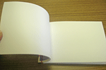カッターナイフで紙を切ってノートをつくり、千枚通しで