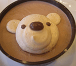 チョコのスポンジの上にムースとクリームでくまさんが描かれています。
