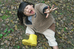 サルスベリ木に必死でしがみ付いている幼児が・・。