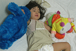 クッキーモンスター。大好きなズズと一緒にベットへ。