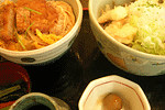 夫 ざるぞば大盛り+かき揚丼 私 小エビおろしそば+カツ丼