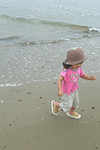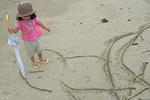 波打ち際を走ったり、大きなキャンパスにお絵かき。