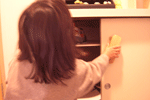 キッチンで麺棒を見つけ
