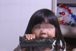 恵方巻きこんな風に食べだす娘。