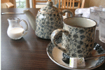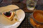 私の注文した紅茶とブルーベリーチーズケーキは素敵な器に載せられ