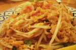 ランチメニューの鶏唐揚げ三味ソースかけ、パッタイ(タイ風