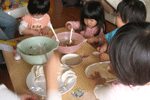 ちびっこは一生懸命ギョーザ作ってました。