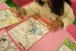 テーマは「友達を探そう」で、塗り絵をしたり、絵を描いたり