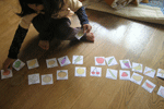 写真は、タングラムのブロックで一緒にカタツムリを作って上手にできたので