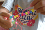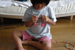 長く繋がったビーズでネックレスや、ブレスレットをつくってました。