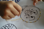厚紙に絵を描いて針をさしたのですが、紙が厚すぎるのか刺せず、目打ちで
