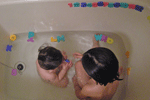最近、お風呂では、アルファベットのおもちゃを口に加えるのが楽しいのか、ネムーが