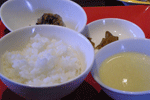 ご飯(お替りOK)とスープを頂いていました。確かにお肉のエキス、コク、胡麻の香り、風味がありました。私のメインのメニュートマトと海老の中華チリソースも生姜が利いていて、プリプリの大きな海老が6本もはいってました。