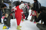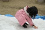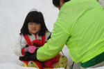 スキーウェアーを着て完全防備。ソリ遊び、雪遊びをしたり