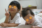 ベットでネムーが飛び跳ねて笑うと、まぁ〜たんも声をだして一緒に笑ってました。