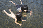 ←は、先週、フリマで買い物の後、水遊び場で遊んでいるヌーディスト(この後、ネムーもパンツ一丁に・・・)達です。