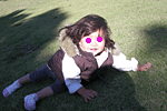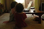 ネムーが、PCでミッキーマウスクラブハウスをしていると、正座姿で、まぁ〜たんが横からみていました。かわいいかったのでパチリ。