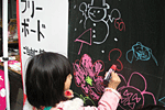 落書きコーナーでは、二人して、光るペンで遊んでました。
