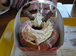 いつものお店で、コーヒーチケットが1500円ではんばいされていました。好きな飲み物(シェーク除く)+お好きなドーナツ(リースや、特殊を除く)で300円になり、1枚多くついています。