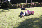 まずは、芝生が張られている丘を、転がってあそびました。何度もやっていたら、体はポカポカになりました。娘と一緒に転がったり、追いかけっこしながら転がり、目が回りました。