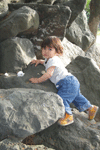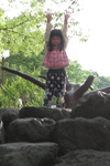 外の公園で少し遊びました。ネムーのが岩の上に上ると、まぁ〜たんも、同じように登っていきます。が、まだ足がとどきません。(笑)