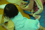 みんなが、買えった後、ネムーが「まだ、王冠つくりたい。今度は、シール張ってみる〜」というので残っていた紙を渡しました。直にできて、見せてくれました。
