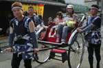 苦かったようで、お菓子のらくがんを喜んでました。そして、私も初体験しました。人力車です。3人で乗せてもらいました。それも、無料!