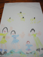いつもは、人だけ描いて、背景や、風景がありませんでした。かぁさん、感動したよ。