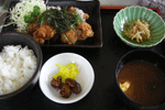 妹はアジアンプレートランチAのナシゴレンセット、私は和風定食(みぞれから揚げ)、夫本日のカレー(キーマ)ランチです。禁煙席でとっても大きなソファーでテーブルも広く、チビがいても寛げます。お料理は、スパイスが効いていてとってもいいお味です。