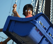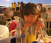 プールの後、1200円で4回乗り物にのれるチケットを買い、ネムーと夫でフライングシップに乗ってました。30分待ちだったので、木陰で、私とまぁ〜たんは、ポテト、アメリカンドックをたべて、休憩。まぁ〜たん、すごい食欲でした。