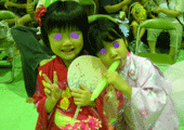 屋台で、風船つりをして、光るおもちゃ(100円)をネムー、まぁ〜たんに2つ買いました。