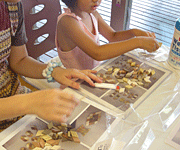 センターハウスでクラフトの寄木細工を、妹とネムーが作りました。