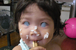 ←キッチンでやってます。まぁ〜たんにはまだむりそうなので・・・。でも、台持ってきて筆でをうばってましたけどね。