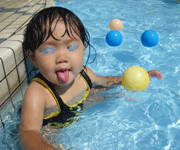ベビープールで浮いている、ボールを追いかけ