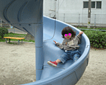 まぁ〜たんは、だいすきな滑り台をこれまた、お兄ちゃんたちの合間をくぐって遊んでいました。ただ、途中から、雨がぽつぽつと降り出したので帰りました。