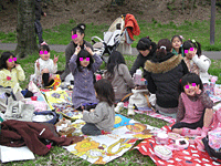 お花見の前に、フリマに出かけたのですが、前日行くとメールをくれたママから子供が熱がでたので不参加になったり、(その子のうちに寄せ書きがとまっていたので、うちまでとりにいったり)、お花見を楽しみにしていた子が、2日前に入院してしまい、不参加になってしまったのですが、外出許可を取れたら参加するとのことでしたが、やっぱり、だめだったり・・・。幹事の私は、走り回っていました。(団子買ったり、その子のうちがどこにあるのか人に尋ねたり・・・・)