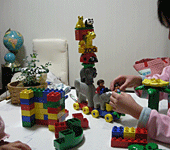 後、レゴデュプロをプレゼント。虹色オンライン教室でのレゴ遊びをネムーとまぁ〜たんとしてみようと思います。