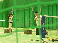 プライベートレッスンですね。が、なぜか、ネムーラケットを左にもってやっています。???