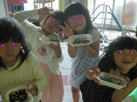 なんとか、みんなに、5,6個のチョコがつくれました。お迎えのときに、ママにあげたり、見せたりして喜んでくれてました。良かったね。