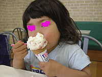 Aちゃんは、途中でギブ、それをまぁ〜たんにあげてました。まぁ〜たんは、そのアイスもペロりでしたが・・・。