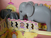 まぁ〜たん、レゴの象、ワニ、猿、人間達をお城にいれ、扉を破壊するわ、(無理やり通ろうとします)