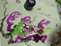 買い物から帰って、お風呂の前に、ネムーが、「絵の具で絵をかきたい」とリクエストがありました。