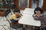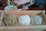 目が覚めたら5時半でした。6時には、出発の予定でしたが、みんなしんどくて、6時半に出発でした。 外は、小雨が降っていましたが、止みそうな雨でした。 ただ、朝ごはんを食べに、出かけたワイナリー(朝食ありと載っていたみたい)が閉まっていたり、まだ、お店がオープンしてなかったりで、ぶっ飛ばして、トイレ休憩に「ゆきむら夢工房」に寄って、隣の直産場で、きのこ類、栗、ミニトマトなどお土産、自宅用の物を買い込みました。 そして、美味しいといわれているチーズ屋さんを探しましたが、たどり着けず、道の駅「雷電くるみの里」で またまた、お土産をお買い物。 そして、車を走らせていると、行きたかったお店「アトリエ・ド・フロマージュ」を見つけました。 美味しいチーズを試食いろいろと試食させてもらい、ブルーチーズとカマンベール、そして美味しそうなシュークーリームをお買い上げ。本当は、工場見学したかったのですが、工場は、稼動していませんでした。レストランで食事しようと思ったのですが、小さな子は、お断りのようなことが書かれていたのであきらめました。外で、買ったシュークリームを食べました。今までに食べたことの無い濃い味がしました。美味しかったです。 もう、おなかペコペコです。グスン。 そして、夫がピックアップしてくれていた蕎麦屋「黒耀」に到着。私は、3種類の蕎麦1500円、夫、妹は田舎蕎麦と、野菜のかき揚げを注文しました。田舎蕎麦でも、そんなに色も濃くなく、繊細さが残ったそばでした。 まぁ〜たんは、あまり食べてくれず、ネムーも、あまり食べてくれませんでしたが、 蕎麦湯は、美味しいとごくごく飲んでました。トロトロの粉を丸めて溶いていると おかみさんが教えてくれました。 それからは、諏訪湖をみてから、高速に乗って、いろんなSAに寄ってスタンプを押して帰ってきました。 なんとか、5時までには、実家に到着して、晩御飯を頂きました。 打ちへ戻り、お風呂に入って、いつものベットですぐに寝てしまいました。 <2日目へ> <TOPへ> |