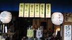 通りに大きな提灯が 地酒に利き酒をしました。 川あそび