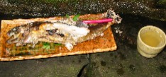 わさびをいれて・・・ 岩魚と岩なの骨酒