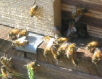 蜂蜜を見せてくれて、裏の畑の巣箱をみせてもらいました。(奥さんに)