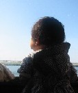 船を待ちながら食べました。帰りの船の中でネムーは、窓際に座ることができ、外をながめていました。